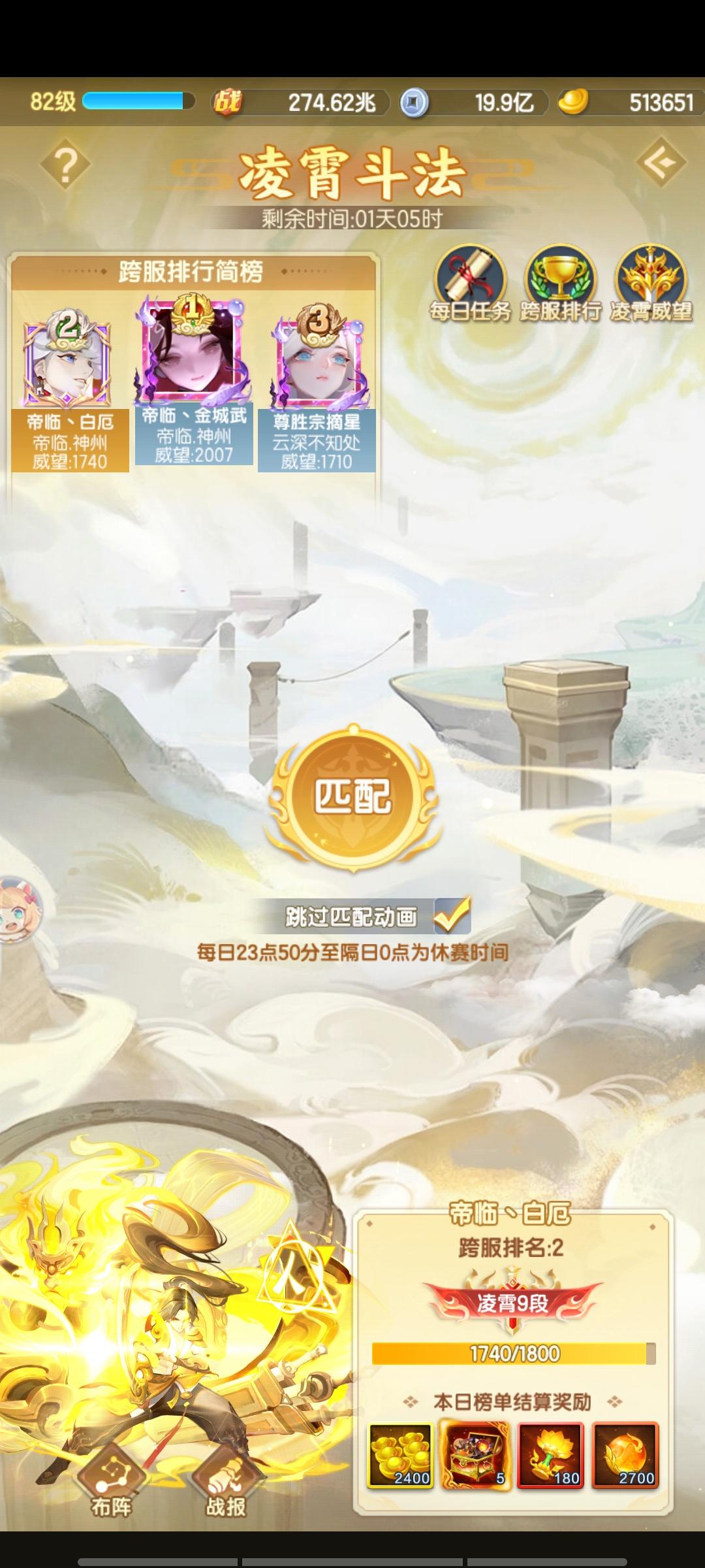 失策了原以为是今天开联盟没想到是明天开不过也没事反正尾区也找不到什么好联盟今天打完龙后元宝成功回到五十万免得马上来的活动也算有点底气了最近的提升都是一些细枝末节所以看配置图不一定能看出什么来哈哈不过有所长进就对了新区的活动就是多一个接着一个(虽然都是跨服打不过现在升级也很缓慢两天才能升一级在思考要不要