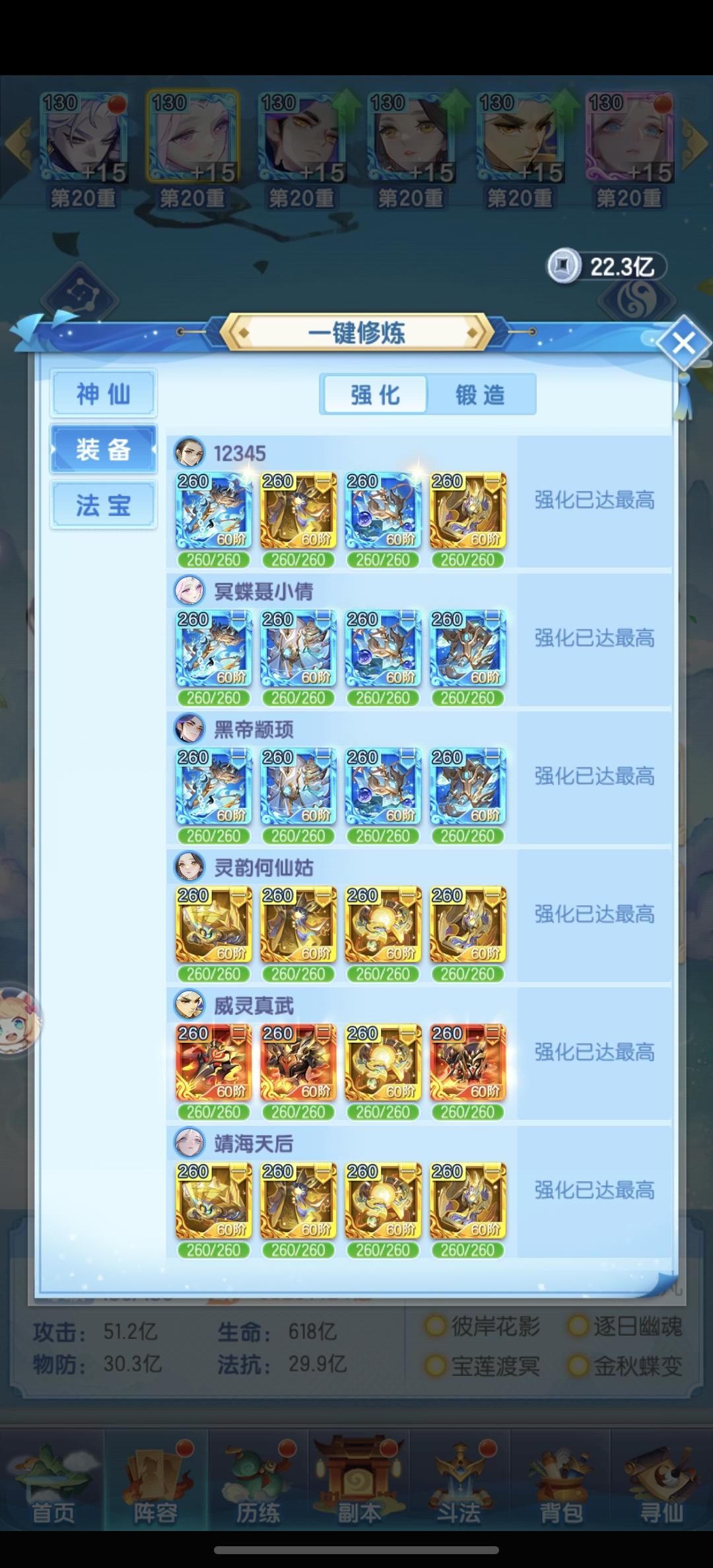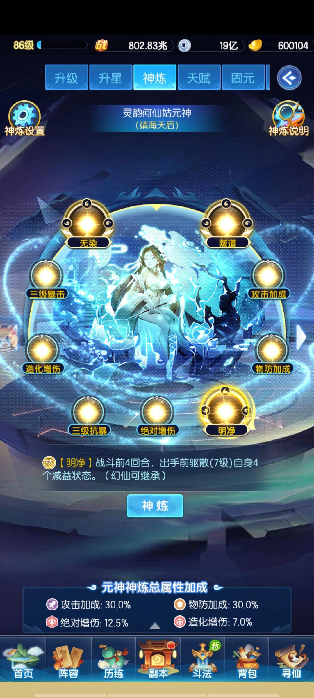 今天合成了夸父可惜现在的金霄二都已经进不了队伍了今天战力还是有略微提升的因为我发现我一直没弄元神神炼今天小洗了一下大佬们看看洗成这样可以不今天道场我终于打了(明天要开幻化了感觉元宝要爆炸了希望买完不会破产吧雷霆战机活动所有关卡都通过啦(求夸周年庆活动也算告一段落了明天不知道会不会有大变化呢?各位大佬明天见啦