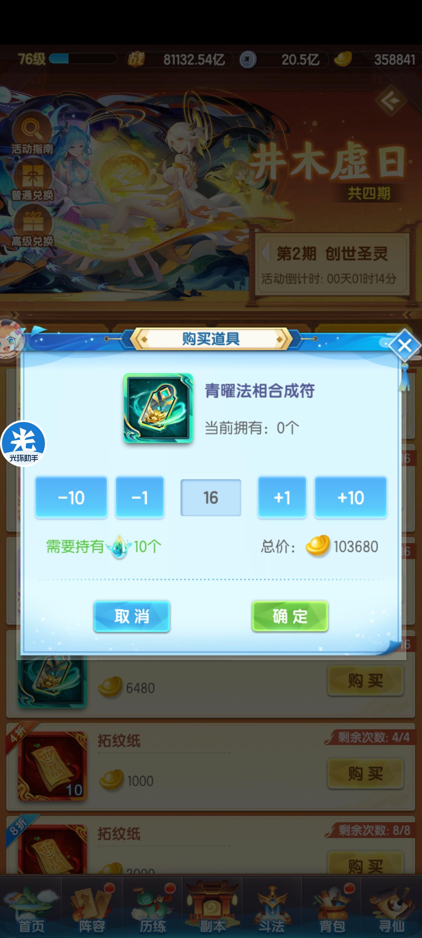 买之前打不了多少积分,买了一波高级仙灵之后提升巨大,爽。 降魔仙灵有伤害有禁锢,功德仙灵对群怪大量AOE,一波解完boss+小怪 还是值得的[表情_开心][表情_开心][表情_开心] #道友请留步