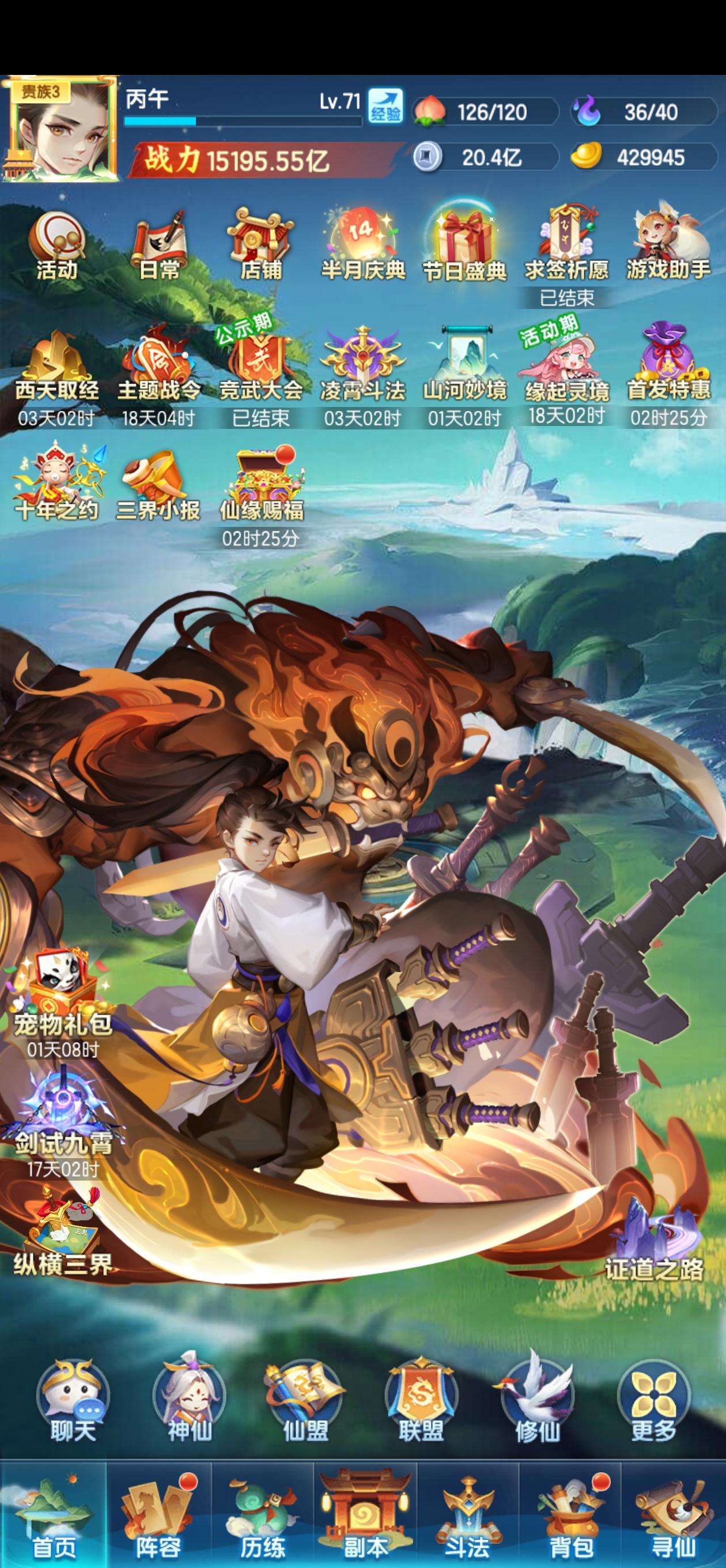 等级:96战力:1043w亿氪度:498r 本来41天的,不过昨天忘记了就当40天吧(雾强行开了一本赤魇书,现在就等一星曦幻神仙和一星灵武6一星幻仙6。战力也是刚好突破一千兆,目前就是省元宝买琉璃了,不然感觉要断档。幻化一星已经不打算切了,慢慢收菜。