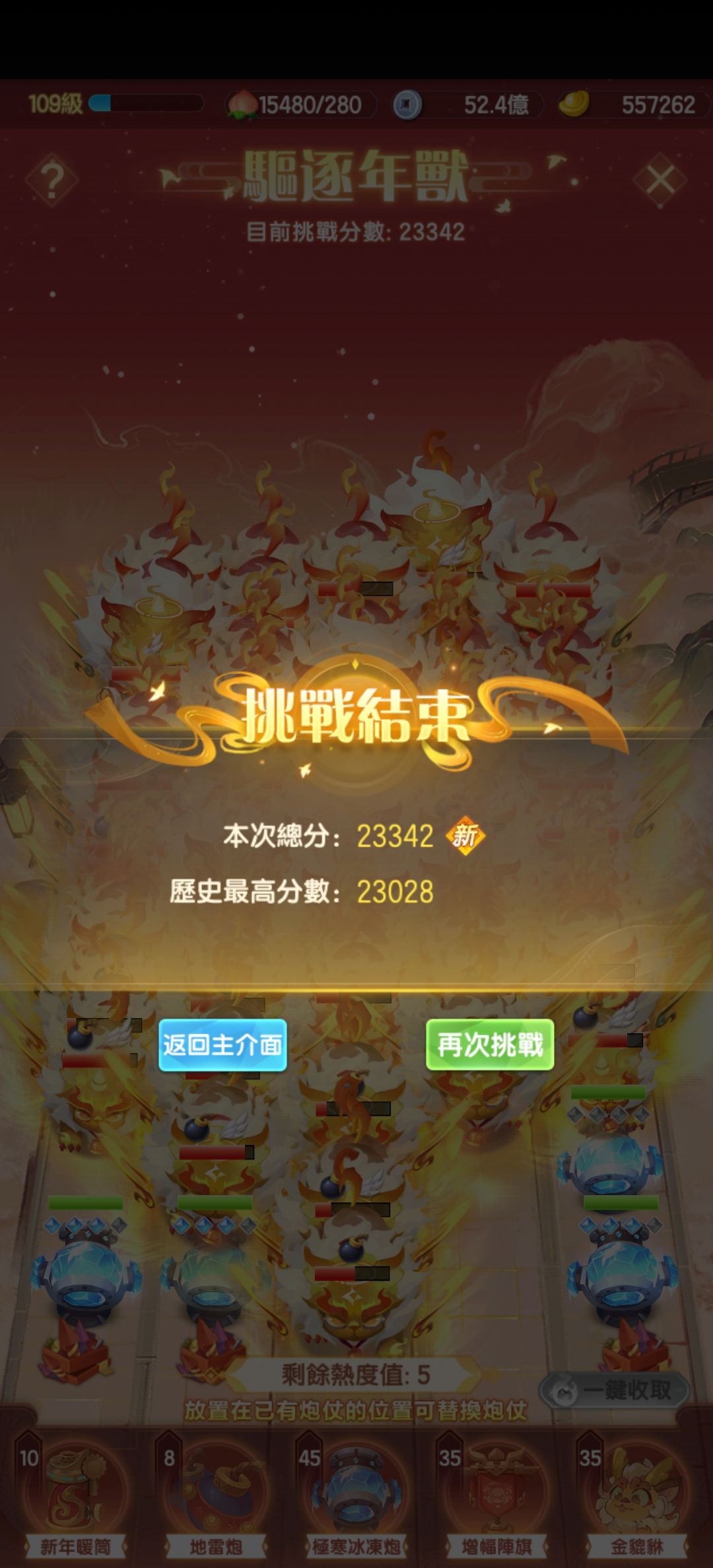 一年一次小游戏,游戏挺好玩策划很沟槽,玩个小游戏设置一堆意义不明礼包不花钱都不让玩,最近感觉吃相越来越难看了,也不知道回坑是不是个正确的选择 (2w分以后出来的年兽末尾的烟花都炸不死,能多多少纯看能拖多久和运气了)