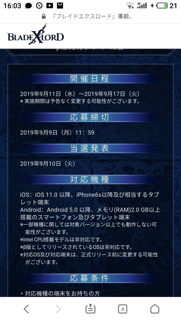 链接https://bladexlord.jp/campaign/cbt_entry/总共招三千名测试,测试资格于9.10发表,游玩时间为期6天,9.11-9.17。注:如果有什么新游封测的资讯可以发邮件告诉我们我们的邮箱地址是1130912395@qq.com,有机会获得你想测试的游戏测评。如果有什么游戏的录制视频,也可以发过来。