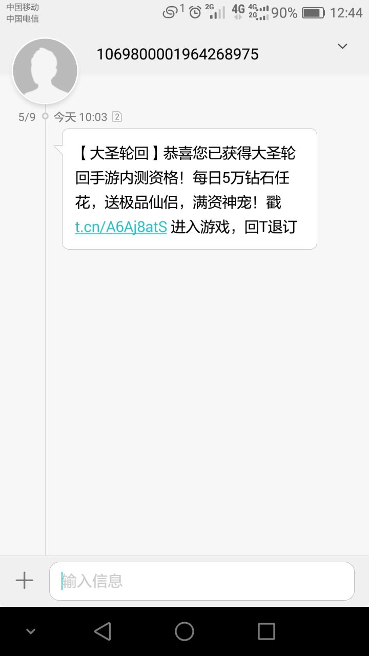某天我在刷着手机,忽然看到一条辣鸡短信发了过来,点开一看,嘿!这不是某国际影星代言的手游吗?你们官方真是太有才了,还能想到用这种方法来宣传╮( ̄▽ ̄)╭