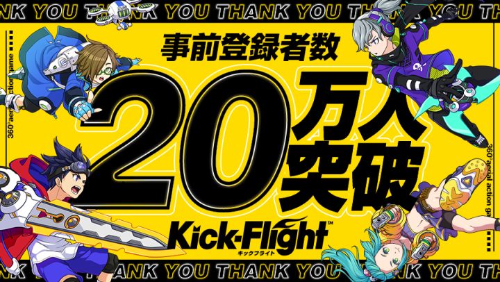 #反冲射击##キックフライト#⭐事前登録者数20万人突破⭐谢谢所有一直支持#kickflight#的大家,真的非常感谢❗❗乘着这股势头,我们也开启了30万预约奖励的目标,如果您还没有预约,请点击下方的链接🔗https://kickflight.grenge.jp/pre_registration/(另外一条推文表示正式配信日期定在2019年秋季,为了保证各位玩家高质量的体验和加入一些新内