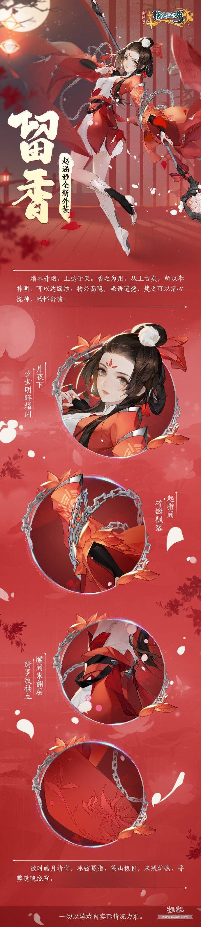 燔木升烟,上达于天。少侠可知,是谁在月下伴香着新装?赵涵雅全新外装【留香】近期即将上线,少侠们是否愿意为多多换上新衣服呢?