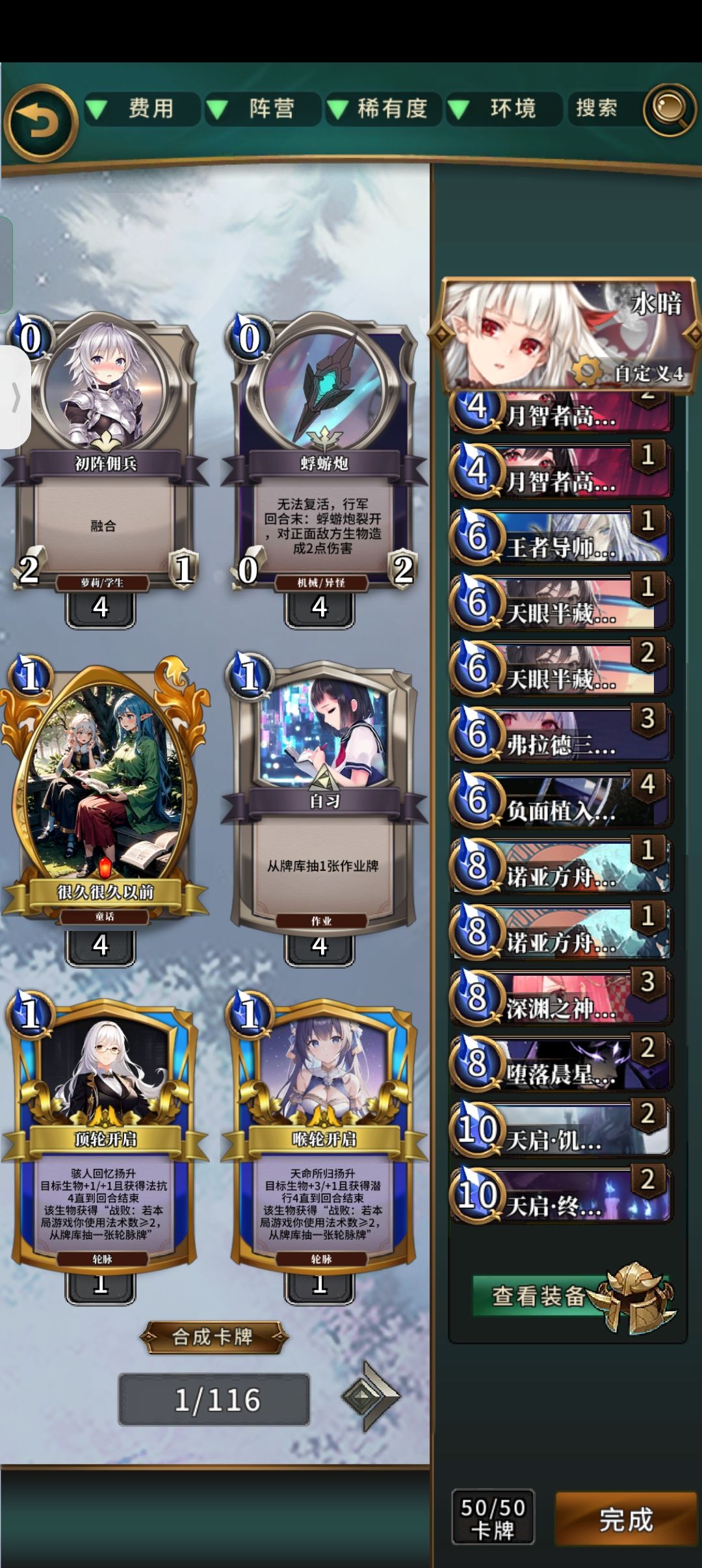 就是一个卡组分享,不适合萌新,因为投入比较高,可能这个投入不如去玩点别的,娱乐向 是通过常见平民速攻莉莉丝改良的,但是费用完全没有平民(???) 思路是速攻,打脸要快 就只是是删掉了常见速攻常见又比较废物(卡手)的卡,比如222的女仆,操丝人偶。 我是觉得没用,如果不是第一回合,丢出去就听个动静。亏场面还闹心 换成了费用稍微高一点点的卡,让莉莉丝变成12回合内可以稳得住的卡组 (我感觉平民速攻6回