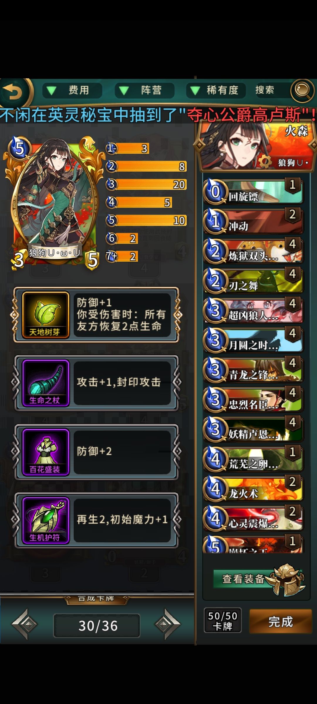速攻往往是上分最快的打法,有兴趣的牌友可以去看看我分享的另一套狐狸卡组,这边介绍一套没有红卡的关翎。 卡组费用最高只有五费,意味着后期的战斗力基本为0。如果在七八费的时候对面血量仍旧超过直伤斩杀线,那基本可以跑路。 卡组打法是前期抢血,后期直伤。前期手里不一定要留直伤牌,尤其是开局,开局拿到狼狗,月圆,一刀斩之类是最好的,凭借贴膜和走位可以快速建立优势。 狼狗核心之外,以分核史莱姆为核心的强度也
