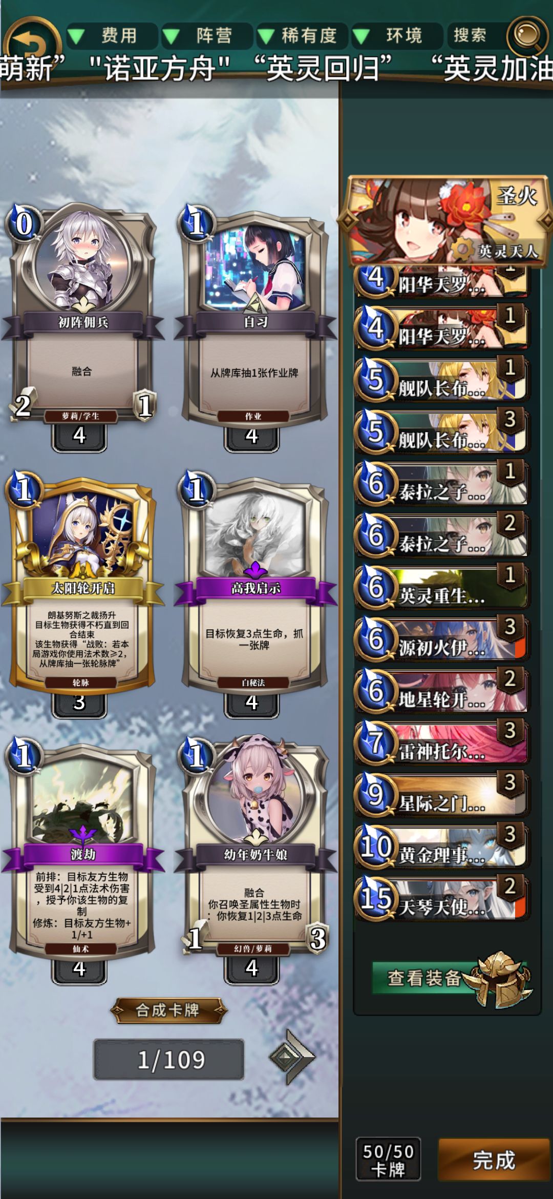 这是一款没钱难玩,平衡稀碎类型的游戏,建议穷人家孩子还是去玩隔壁影之诗吧,如果有钱也不用来看这个攻略有大量土豪攻略供你选择。但如果你是没钱还想玩, 那么可以参考下我这个卡组,一个金卡没有,真正的穷到极致的卡组。说之前在叨叨几句,作为一个刚入坑的萌新你不氪金不会玩那么你将分两步进行这个游戏,1.选个角色,2.进游戏挨打。其实这游戏已经开了很久了,但是国服才拿到版号上线,但是老玩家还是和你们一起玩,而