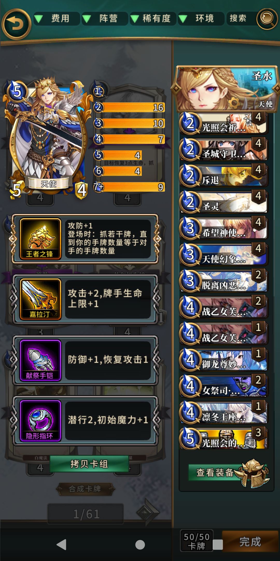 先贴卡组: 今天早上多花了点时间打到神话,卡组在上面贴了9费精控最好换成崩坏,至于装备嘛,宝珠➕封印加再生2这些,封印是为了应对大部分的强力效果卡,和挡住目前天梯主流情况的嗜血,例如莉莉丝和关羽,都是代表,至于打其他的效果卡这个要看情况下,这版本的人鱼要搞清楚自己的定位,本体80的情况都是拿下去直接送的,还有这个基本打法的思路,3费康的问题,在手上卡手的情况,优先还是选择跳费。天启最好是可以带满,
