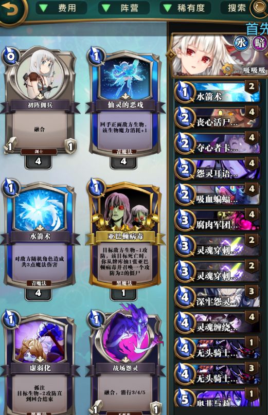 版本T0德古拉,三日神话。 刚开始都是在用一些杂交卡组,到了王者高段的时候摩擦了很久,中间拿了波奈娅掉了一大波分。后来才醒悟这游戏要玩谁。 带卡思路: 带入233和344,是为了提高前期压制力和避免爆牌。偷牌流德古拉很容易一手劣质牌然后慢慢暴死自己。并且233和344的被动能够触发布将军的吸血。 无头骑士和冥姬,我思考了许久,觉得还是无头骑士比较好。冥姬虽然挺超模的,但是这套卡组的核心展开时前期压