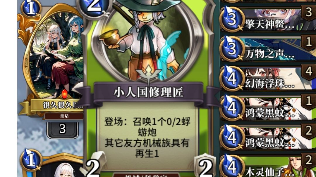 先上卡组 核心卡如下 前期非常强势的卡2费3费出4费牌本体,5费5个带封印的机械生物,场面会十分强,对面没有解场你就赢了一大半了 外挂元素体系,雪女非常好用,能解场,封印,还是冻结攻击,用过的都说好,人鱼是没有直伤的,3费灵魔导放2号位可以有打3的火球,然后通过龙姬复制,有奇效,这套卡组法术很少,所以很容易复制到,有时候就是缺这几点伤害,幻海联动卡有就带没有就带其他机械,属于锦上添花的卡,影响不大