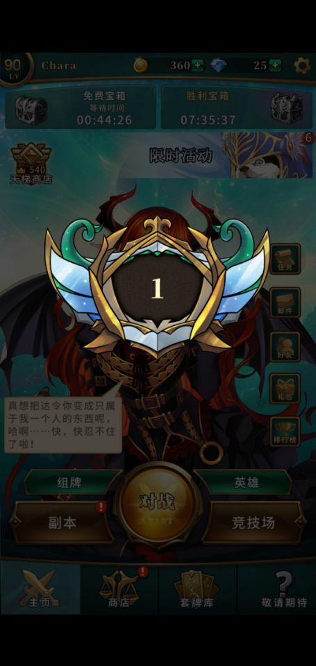 大家好,这里是chara,神话很简单的,随便用预组嚯嚯两下傻子都能上神话。我的攻略到此结束,谢谢各位骂我。 开玩笑的,下面是正经攻略 1、这游戏王者十段上就是神话,神话从1分开始,上不封顶,所以我不建议大家上神话,容易掉下去。 2、每张卡你最多可以持有八张,但你最多可以往卡组塞四张,这样做的目的是避免大佬塞太多红卡,照顾萌新,可以说是非常人性化。 3、这游戏福利很好,抽卡的通用货币是金币,金币天天