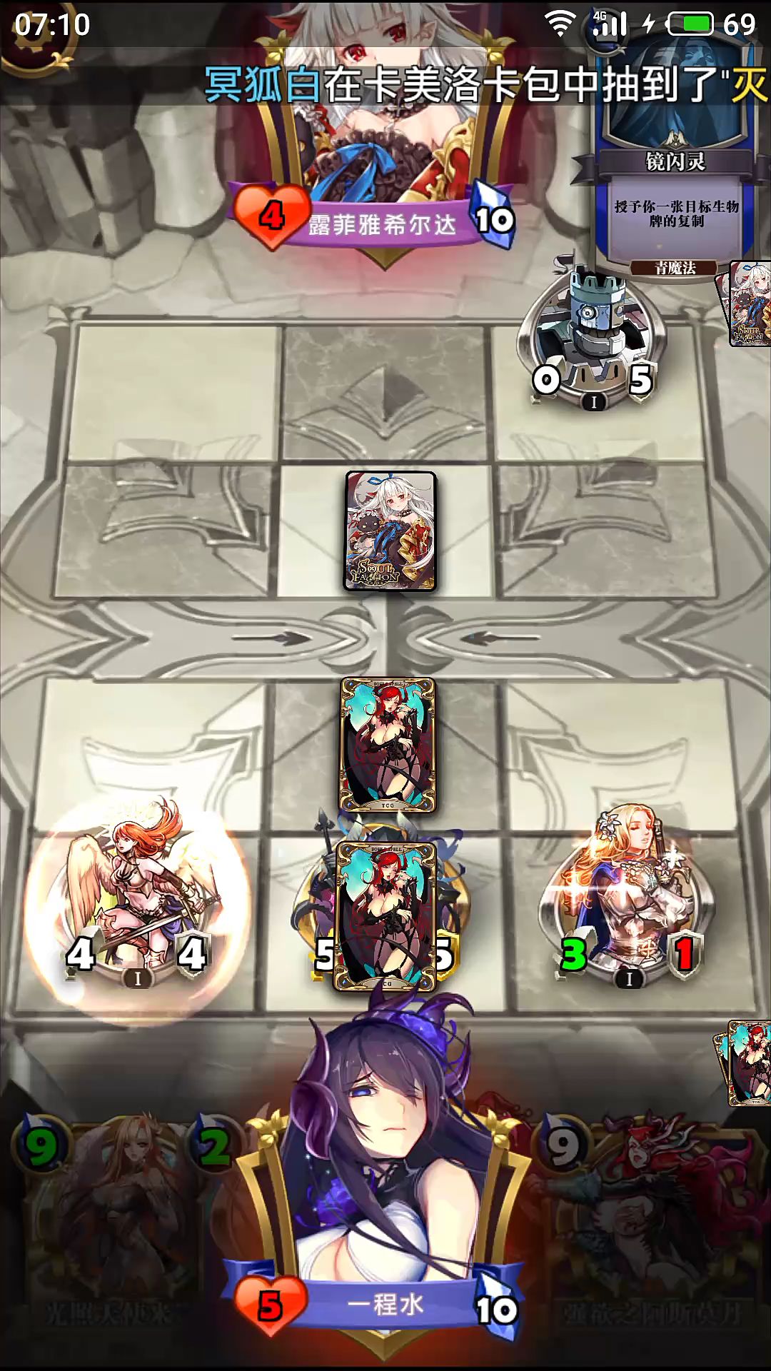 放了个那个给橙卡加3攻防吸血的橙卡,一直卡哪里没效果,然后天使天启就出一个,上9费那个卡用一费剧毒,卡自动到手里费用还扣了,我真的是吐了