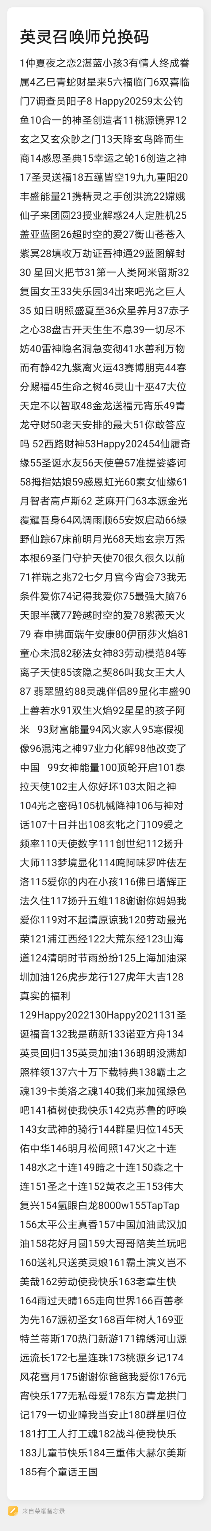 附上我整理的兑换码一份