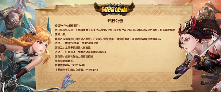 【开服预告】《黑暗使者》2019年1月9日开服预告