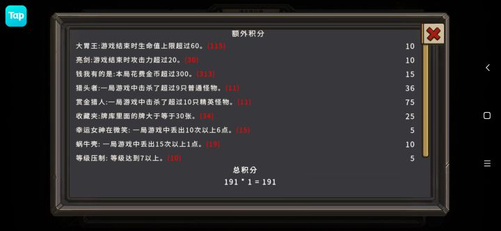 策略性高偶尔高一下算是亮点,但是每个小怪都需要不停的看怪物卡牌、怪物技能、计算我方的卡牌点数和效果,次数多了就会很累。
