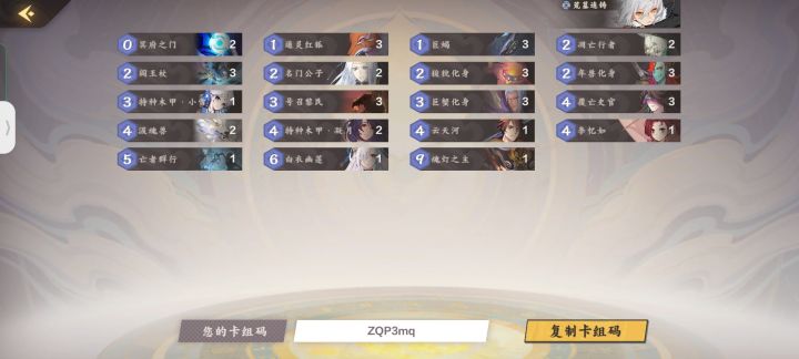 ⚠️提前说明,卡组偏娱乐,上不了分别怪我先上构筑ZQP3mq首先是单卡分析冥府之门,开局打出可以堆3墓,0费堆3,但是由于复数上手会很尴尬,所以只带了2。值得一提的偶尔是可以堆出淮南王也不算是纯堆3墓,偶尔可以淮南王出场。(我曾经复活三个淮南王把我场卡了)老牌神卡通灵红狐,配合阎王杖可以打出强大的爆发+铺场,是非常契合快阴的一个部署,我对战中就有很多靠狐狸赢,再加上补充1费曲线。建