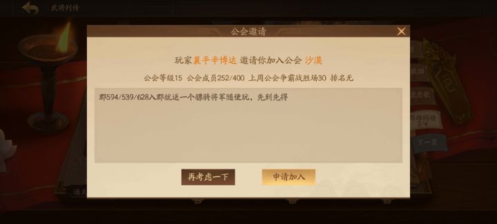 百强公会「昆仑派」招新!上线敲三下,会战随缘打,搜索直接进。不强迫完成任务、不强迫加入叉叉群、不胡乱踢人!每周末发放20联军盛宴,并根据当周的公会贡献晋升职位。小伙伴们快来吧!邀请码/召回码:4JQUYSM。