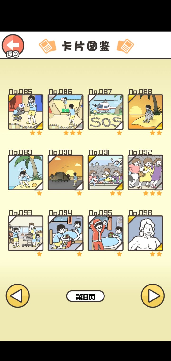 顺便写下个人认为有点脑洞难度的 第六张,点最右边的人群,会出现一个案扭 然后中间捉虫子,想要做到两只,点树上的叶子,金色虫子正上方,再把西瓜放在那个露出来的木架上 最后,把恐龙骨架两边绳索,全取下 ,可以解锁恐龙骨架掉下来的图