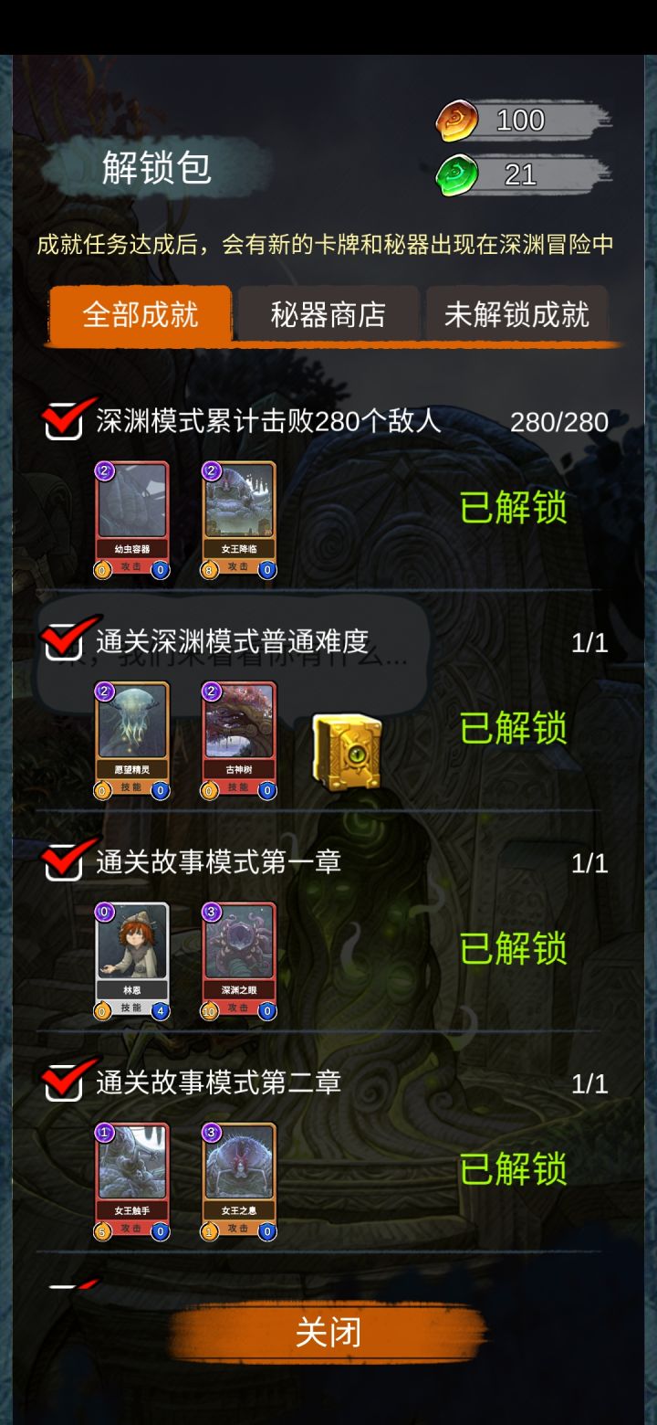 因为刚玩天赋秘器神的都木有!看攻略大神们都是暴力流!自己试了试打了几天的任务,解锁了一些卡牌!