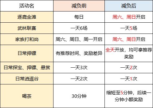 为了世界大义,为了贯彻爱与和平!(×)我们又开始“牺牲”策划和程序们啦!今天勤劳的剑娘又给大家带来了一个好消息——日常优化,全民减负时代即将到来~【游历日常优化】:剑娘收到过很多次小伙伴们关于优化日常一条龙的建议,这里我们也做出了相关调整来使得少侠们的日常更加便捷高效,具体内容就让剑娘带大家一起来看看:首先我们对日常活动的固有顺序进行了调整!它们之间的关系从串联变成了并联。什么意思捏?以前