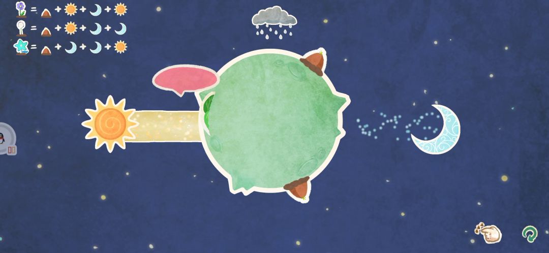 记得以前好像玩过类似的,不知道是不是这个游戏哈哈哈,不过想知道这游戏为什么这么久了还是测试服诶,不太懂,蹲一个大佬回复开屏就是可爱冲击!一开始的小漫画也好可爱哈哈哈,把星球种在玻璃杯里~这个想法真的好可爱!还有开头的这张cg,小星球配小女巫敲敲敲级可爱!没想到这种画风的游戏竟然有亿点点烧脑55直冲最后一关 然后 卡住了(。还是得老老实实从头玩看玩法哈哈哈,怎么躲过乌云这样目前过到差不多中间的位