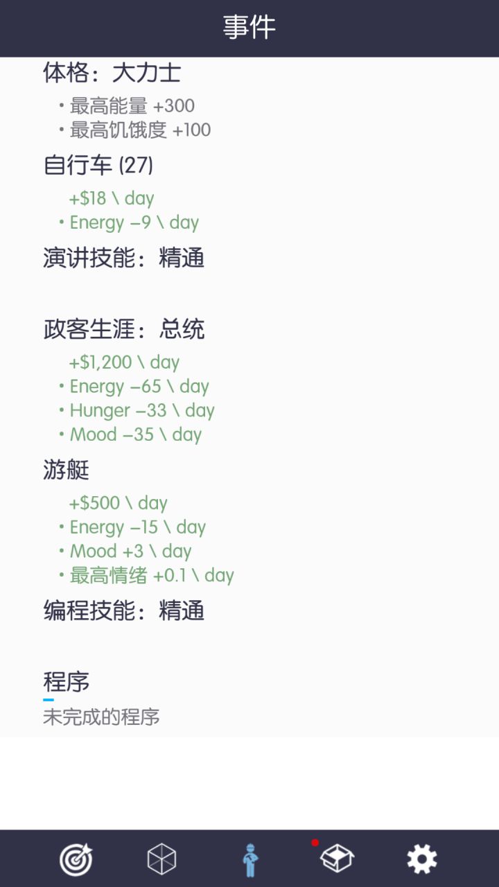 大概算是完了吧。。。。千万资产,日入9w,总统,99游艇,画作最高奖,自行车超级工厂,绘画编程演讲精通,石油大亨,大力士。。。两天加一双快抽筋的手(没试过总统之外的职业,嗯,我只想做总统(. ❛ ᴗ ❛.))