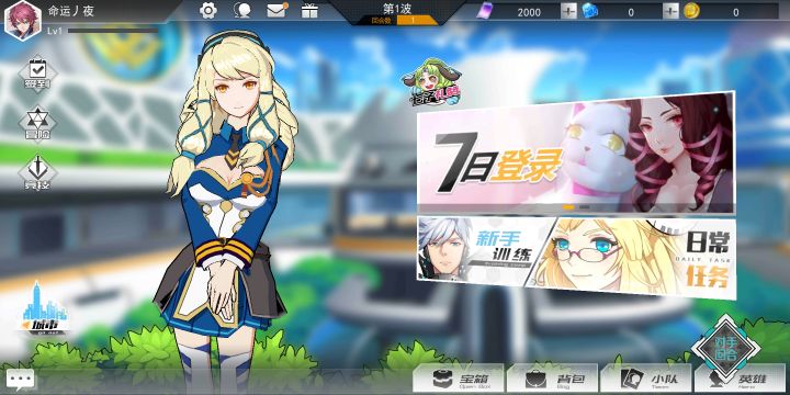 1.进入游戏界面直接输入账号密码登入(会自动注册)动画略过不讲2.取名界面只能使用中文3.新手指导不谈直接进入主界面3.1(介绍顺序从左至右,从上至下)依次为玩家信息,签到,冒险,竞技,城市,聊天界面。3.1.1玩家信息中可以查看拥有晶体数量(白红黑绿黄)。白红黑绿晶体为解锁英雄卡牌的一种资源,黄色晶体为购买贴纸的资源。3.1.2冒险冒险为pve副本模式,进入通关可获得角色经验