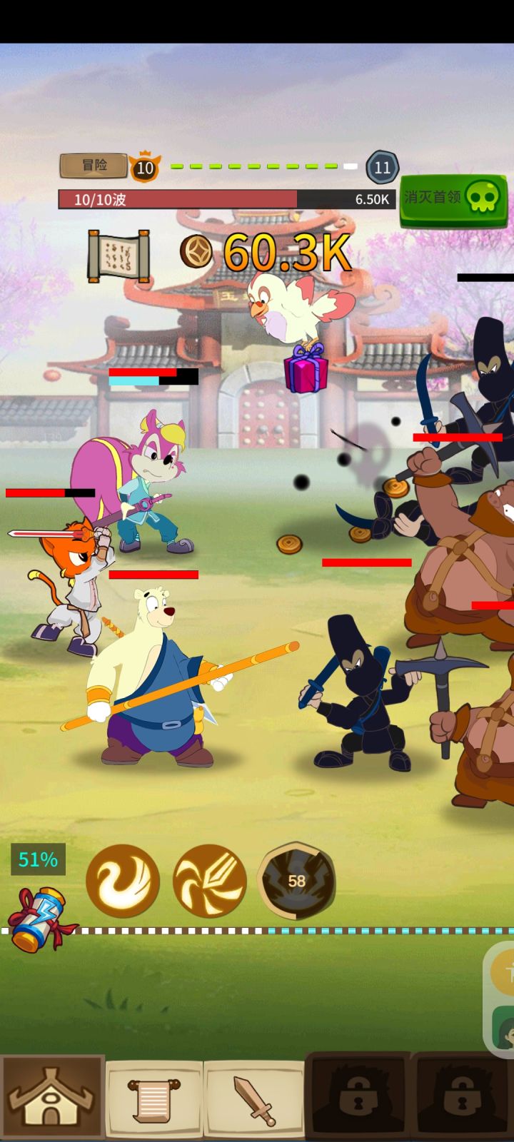 说到这里就不得不提游戏的道具了,自动点击配合时间加速,不用动手就能看到一剑霜寒十四州,敌人一片片倒下的场景,成功地解放了我的双手!