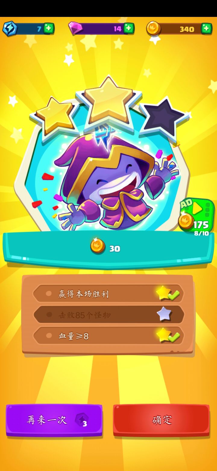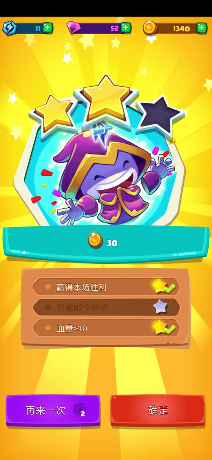 这是一个广告游戏,关卡结束一个广告,下一关开启一个广告弹子太大,角度算法有问题,我弹子打到左上第二行的位置,它回弹能直上直下。右上角的回合数并不影响数据,你出这个意义何在。连击宝箱每一阶奖励都不递进变更,我176连击跟35连击的一个鬼样,都是加了一点血,36到176几个箱子被吃了?宝箱没打死,2星以后就再也看不见,蛋疼。盾牌怪正面弹会被格挡,这个倒是很新鲜,设计得好,希望继续加油。