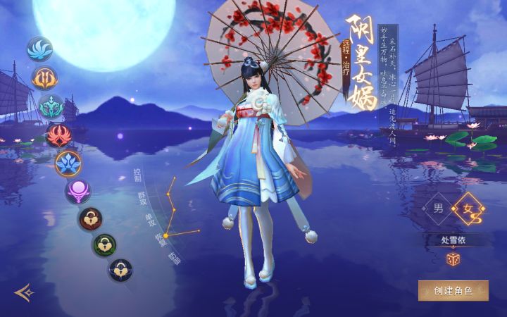 女娲,中国古神话的创世女神,以黄泥化身自己抟土造人,连接人类文明建立婚姻制度,以熔彩石补苍天,斩鳖足以立,一日中七十化变,创造世间万物,因此也被称为“大地之母”。而现在,在《盛唐幻夜》的世界中,你将有机会化身女蜗,亲身经历哺育大地,滋润万物的经历。角色装备:伞——持扇生万物,吐息予命魂角色属性:远程,治疗技能介绍:技能分为普通攻击、主动技能、被动技能三个方面,技能均可通过银两进行升级到