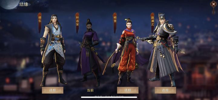 奇缘系统作为《盛唐幻夜》中另一个独创的玩法,其出发点是希望可以给予玩家如身临电视剧中的逼真体验,创造玩家与男女主角之间的奇妙缘分。玩家可以通过游戏主界面右侧的功能按钮中,选择【奇缘】,进入奇缘界面,可以看到游戏中给玩家提供的4位主角,穆乐,叶远安,明慧,赵澜之,玩家可以从中任选一位心仪的主角与之结缘。 选择对应的角色之后,会有剧情引导玩家去选择家园,有豪放居和婉约居供玩家凭借自己的兴趣爱好构
