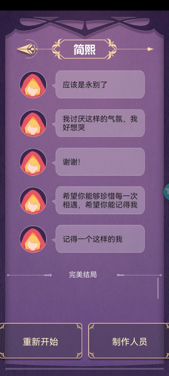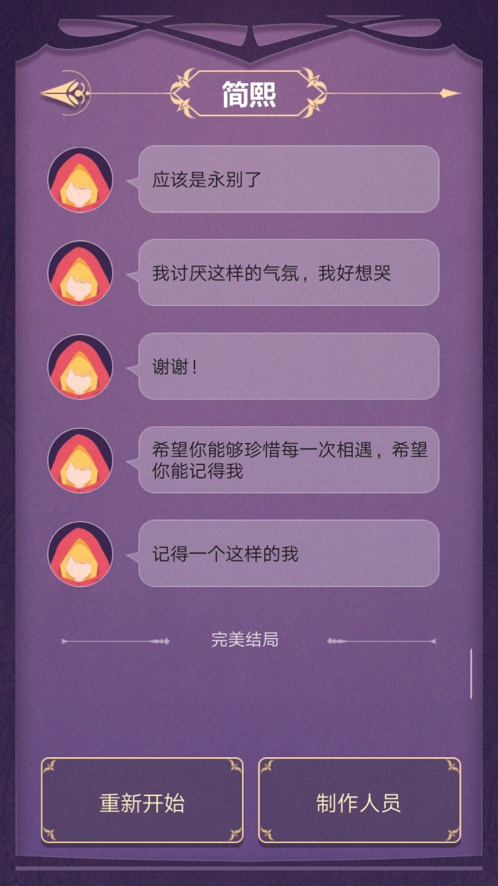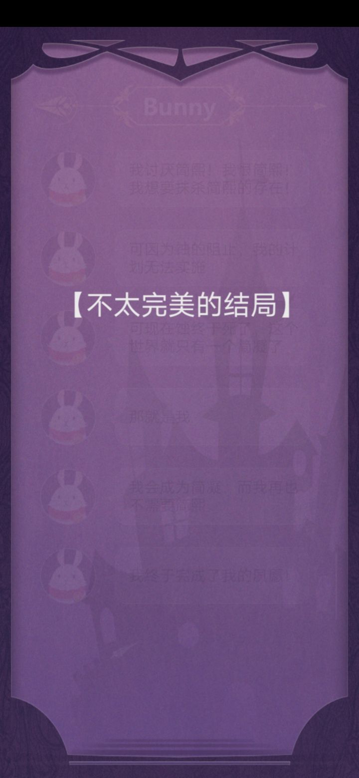 【有剧透】一周目的时候跟bunny对话完就大概猜出来了,可能是因为bunny太像Q比(一个动漫角色)了,从一开始我就对所有人持怀疑态度,因为简熙表现得太过于天真了,而且一切节奏太快了,人物陆续登场,但是没想到人设真的就是天真😂,而且游戏流程真的就很短。说回剧情,在一切没有定论的时候bunny很直接的告诉了我所谓的真相,她过于急切了,无所不知但是却完全没有出手,盖棺定论蚀是坏的。后来bunny厌