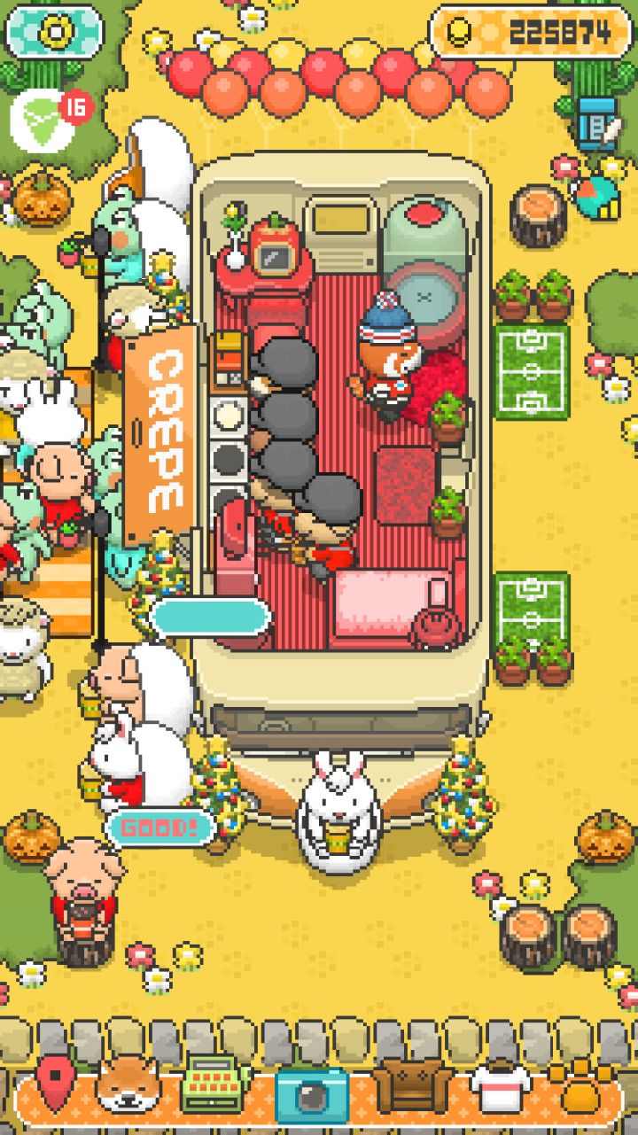 《Food Truck Pup:烹饪厨师》是一款融合了美食和萌宠元素的经营游戏,玩家可以带着可爱的狗狗前往各地售卖可丽饼,存钱购买各种家具和服装,招募更多的动物打工仔收集食材、招待客人、发送传单,以此不断扩大小店的规模,和狗狗们一起经营一段幸福满满的生活。游戏可在和下载