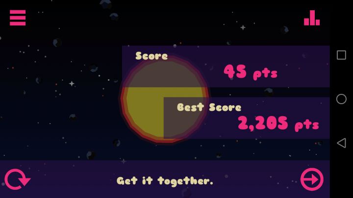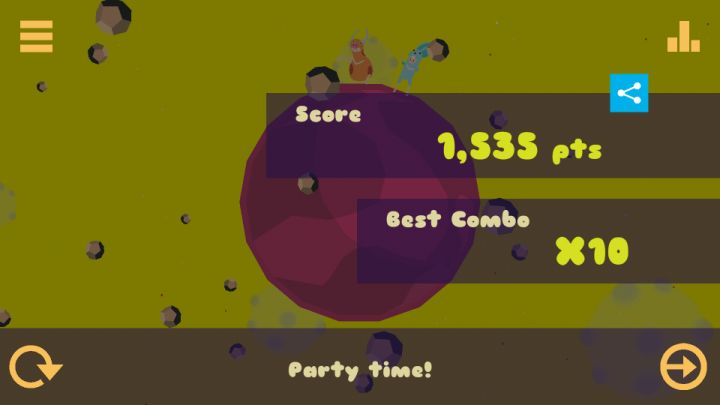梦想:“我在未来等你。——恩,一定去,跑着去”——《穿越时空的少女》现实:其实我在去找你的路上,是一路抖着腿过去的。《行星探索》是一款能跟着节奏点头抖腿的魔性游戏,除了富有乐趣的画面,其中很重要的游戏元素是:节奏。在一个奇妙的星球上,有各种奇怪的生物,你坐在奇葩的飞船里,只需要单手点击一下屏幕,就有一道光束从天而降,吸收星球上的生物。但要注意的是:只能吸收动物,不能吸收植物。游戏明显的玩