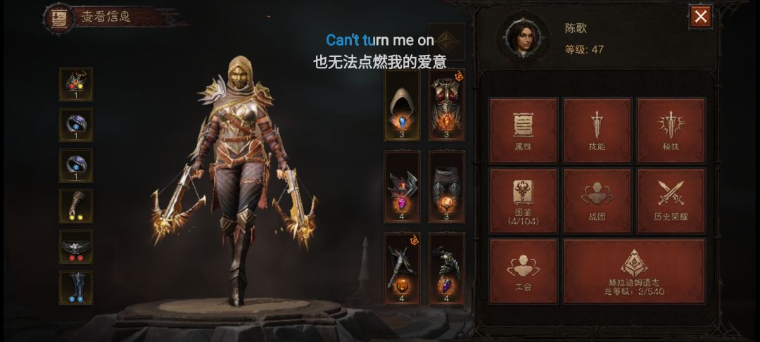 这里是你们的游增同学,这是我第一次写游戏攻略,有什么地方不写好的欢迎指出,有不懂的也可以评论区留言,我会及时回复的,然后这篇帖子会不定时更新,有些方面还没想出来怎么讲解,废话不多说,开始推荐 首先先看看我的属性:一名47级的猎魔人,战力:528,单人秘境排行榜第36。 ——————————目录—————————— 1.职业(有推荐向) 2.设置 3.前期细节 4.关键NPC 5.角色强化 6.秘境