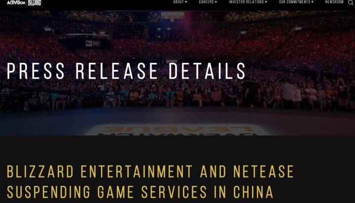 暴雪娱乐11月16日,由于与网易公司的现行许可协议将于2023年1月23日到期,将暂停在中国大陆的大部分暴雪游戏服务,包括《魔兽世界》《炉石传说》《守望先锋》《星际争霸》《魔兽争霸III:重置版》《暗黑破坏神III》和《风暴英雄》。《暗黑破坏神:不朽》的共同开发和发行则涉及两家公司另外的单独协议。暴雪娱乐自2008年起就与网易签订了许可协议,负责暴雪游戏在中国的发行。本着暴雪的经营原则和对玩家