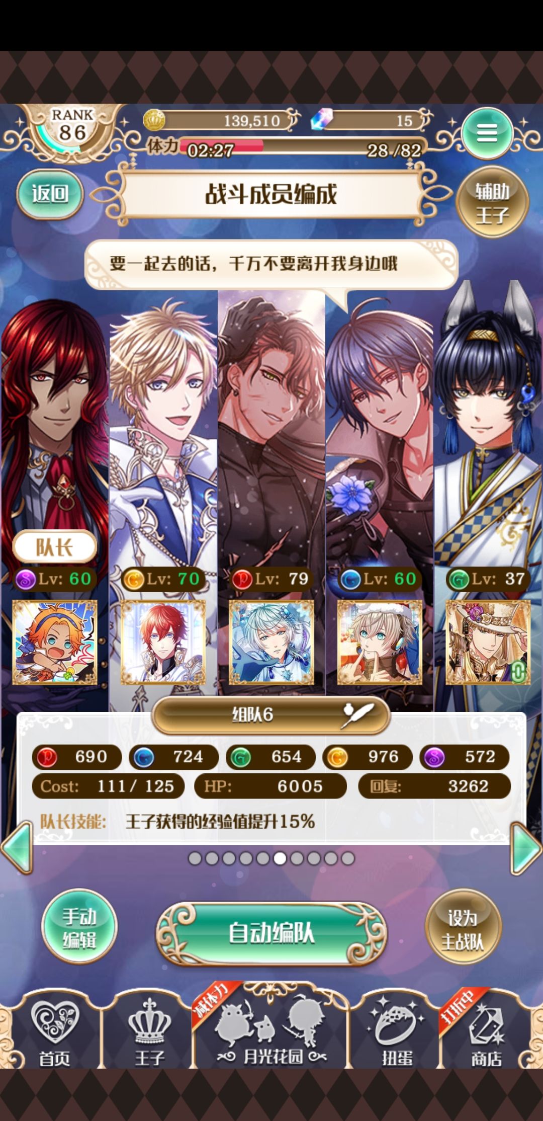 参照游戏里别人的成员编成,做的, 辅助王子我选全员攻击力最高的,但是满三星要看运气,要多刷几次有时候红色球球出现的少分就地低。 游戏里的编成,第一排红队基本是平民队,有两个是活动的,但是只要肝就得了王子 参照别人自己组成的红队。