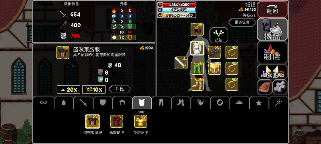开局选人,宝藏猎人→恶魔→旅行者。这三个三围基础属性都是挺好的(还有个属性非常平衡的骑士长) 各方面属性非常平衡的骑士长 选好人后直接进入地牢,开局咱们有50金币 去问老板买把菜刀跟木板,再转手把自己的油菜刀卖出去。穿好装备就下地牢。 记得跟商店老板谈话,每层老板说的话都是有那么一点用的。 1到2层里有个隐藏房间,注意下小地图,有没有墙壁在闪光,闪光的就是隐藏房间,里面有件神器。 每杀一个小怪就会