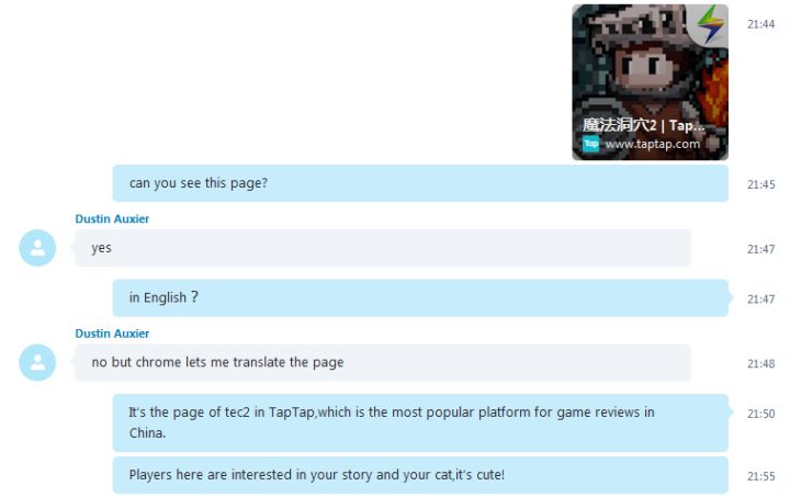 事情是这样的。10月18日的时候,我们短暂登顶了TapTap的iOS预约榜!我们负责《魔法洞穴2》的运营人员就迫不及待地把这个消息和我们的国外制作人做了分享。【忽略英文漏洞!能看懂就行!】没想到Dustin把这个事放在了心上,并且还靠着chrome的翻译功能,自己动手申请了一个Tap账号,并发了一个帖子想和中国玩家表示谢意,感谢支持.....戏剧的地方来了哈哈哈恩他走错片场了!最后跑到英