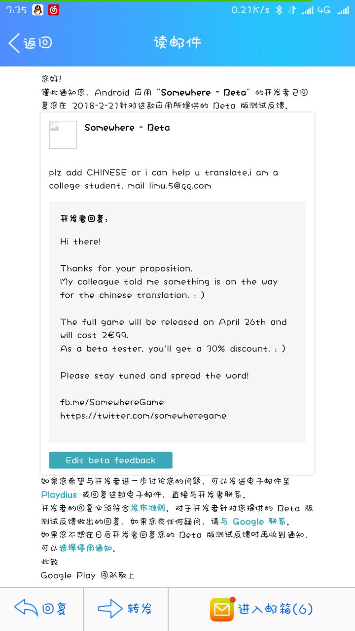 开发者在做中文和4月26发布预计价格是2.99欧 合软妹币23.5