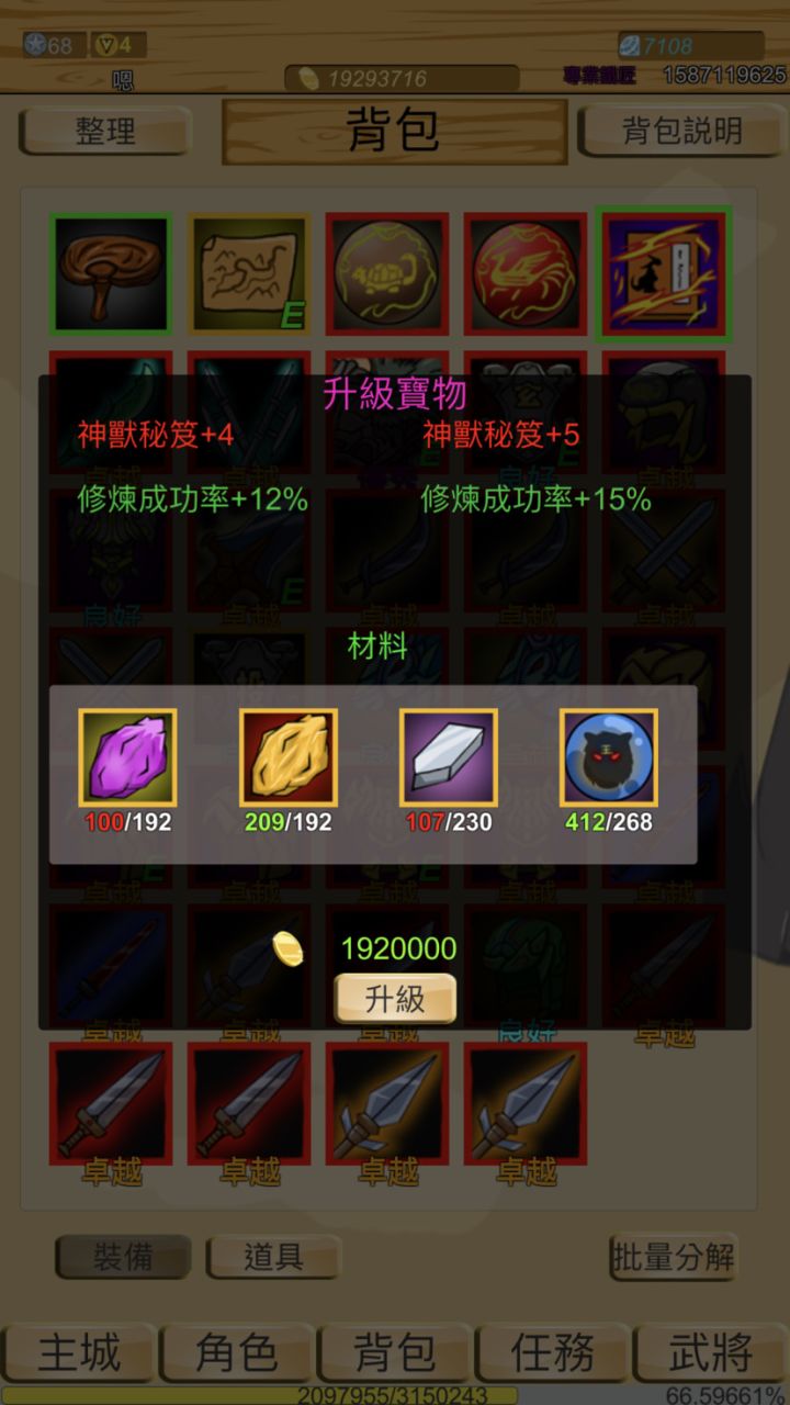 神兽宝物升级加神兽出现概率嘛