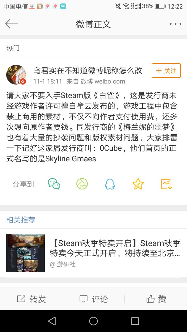 还没有下载看图片应该是rpgmaker做的游戏,立绘画风很喜欢,UI也做的很好看但是往上一翻,0cube这个熟悉的名字就映入眼帘搬运了一下微博上的东西