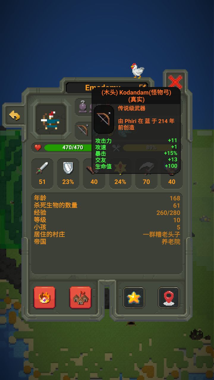 世界盒子王中王成就 在新的1.5的版本中会有亚种,可以查看亚种的特质。 其中有一个基因镜像特质,存在于白袍法师,邪恶法师和视频里出现的花妖一类的生物。 这些生物需要“黑色方碑”来激活他们的建国权利。 当法师建国者花妖见建国之后,他们有这种 基因镜像 的特质。这时只要将他们的王国的国王的特质点满,直到国王生育出下一代,(也可以像视频中使用爵士乐来催生下一代)老国王死之后,下一代继承他的所有特质并成为