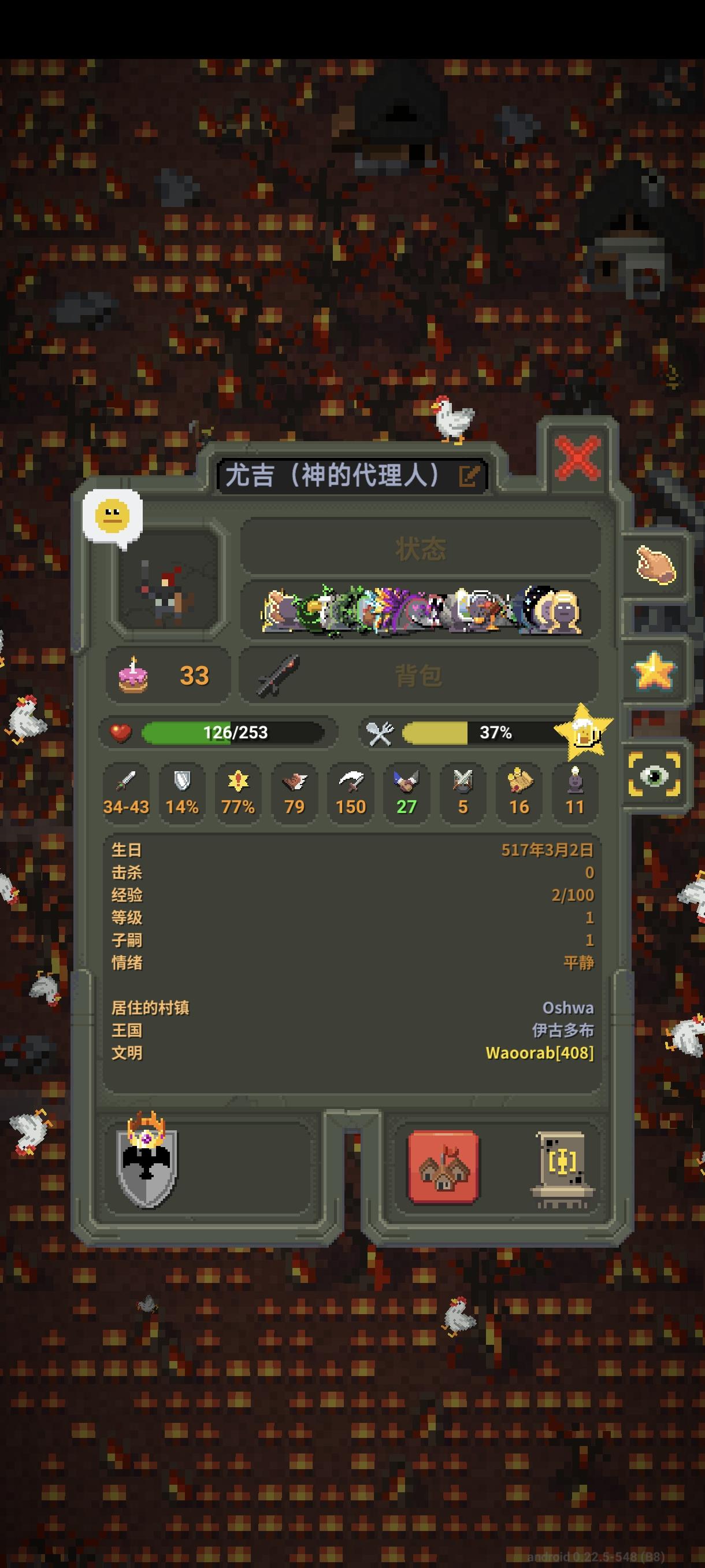 1.开放 文明生物有10%的概率自带此特质2.长寿 文明生物有7%的概率自带此特质3.兴旺 文明生物有7%的概率自带此特质4.绝后 文明生物有7%的概率自带此特质5.神子 玩家释放的生物自带此特质6.夜之子 兽人和狼自带此特性7.月之子 精灵自带此特性8.幻听 对一个国家使用煽动后该国家的国王获得此特质9.防护罩 使用生物栏中的核心生成的生物自带此特质10.怦然心动 获得成就 爱