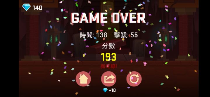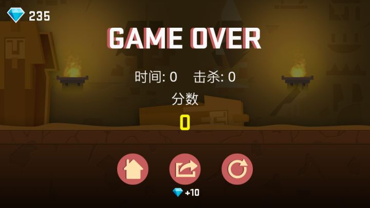 古墓英雄玩法上虽然比较简单,但是想获得一个比较高的分数还是挺难的。在游戏中,玩家需要利用左右横跳改变自己的弹道轨迹命中敌人,从而击杀更多的敌人。同时在左右横跳的过程中,很多的生物也可以被踩踏击败。但是并非所有的生物都可以通过踩踏,像是鬼魂,如果你不小心在跳跃的过程中跨过了他,跳到了另一边,他就会瞬移到你身上击杀你。在游戏的过程中,还会有宝箱时不时的出现,通过跳跃到宝箱上,可以获得宝箱中的道具。