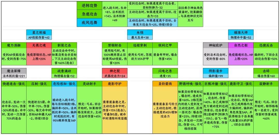 核心技能,神血装备时效果翻倍 1阶技能 2阶技能 3阶技能 技能树 大剑系,基本和招架相关 神器强化 强化神器效果,皮甲增伤,大剑可以叠增减伤 长弓强化 加远程偏斜,远程和法术免伤,射程,命中