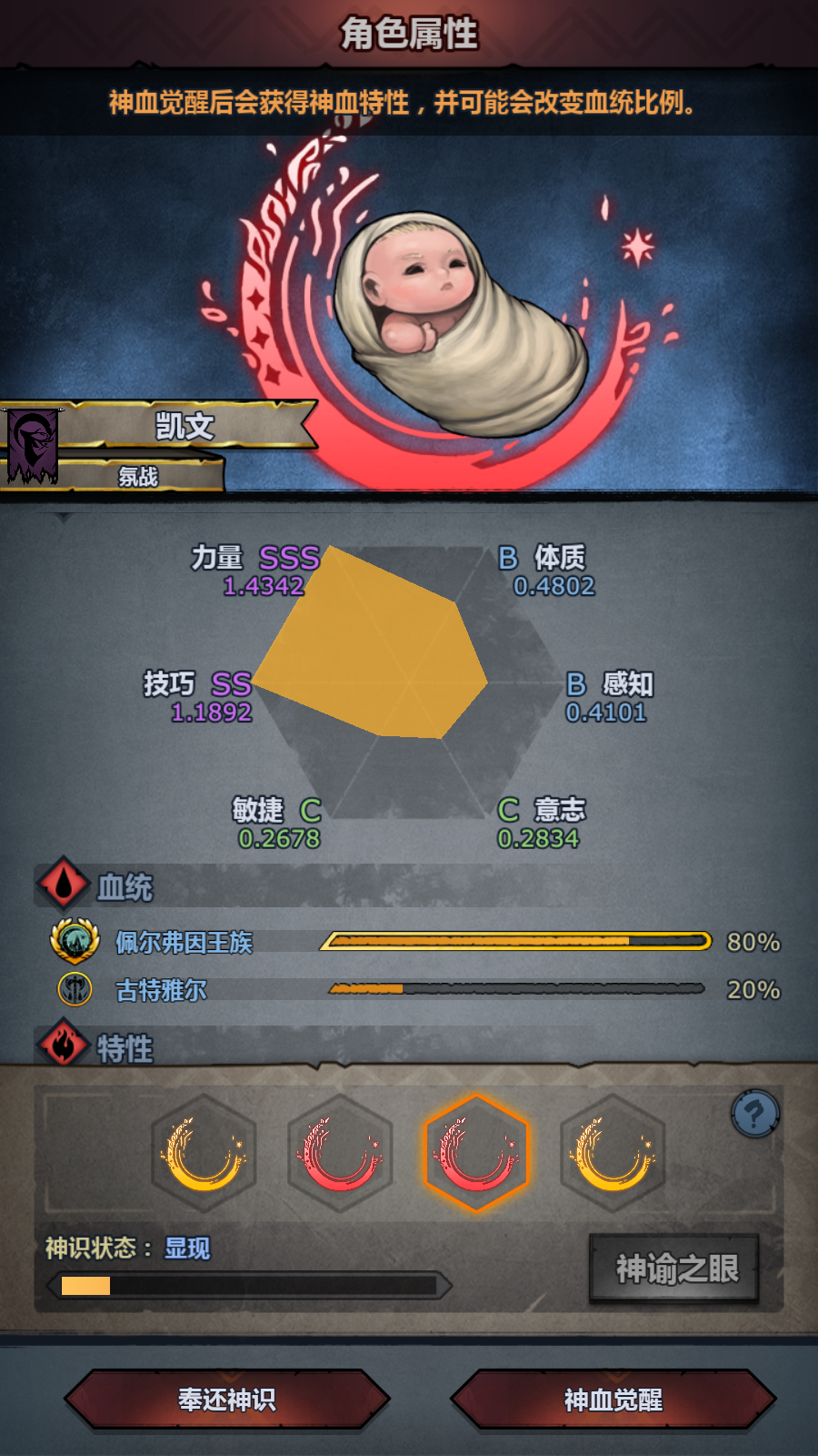 各位诸🐷友们都知道,混血是🐷神的核心玩法之一,不管是为了结合不同种族血脉特性来打造强大的神子后代;还是为了不同种族的面相结合产生的别样颜值,都是混血的乐趣。(来张高颜值的镇楼) 作为一名从屠德版本到现在狂战时代的资深混血玩家,今天将我的一些混血经验分享给大家。 激活神子混血特性需满足:对应血脉比例 ≥70%(如佩尔神子需佩尔王血≥70%);携带本族圣痕。混血的方法有两种正配:己方满血(100%)+
