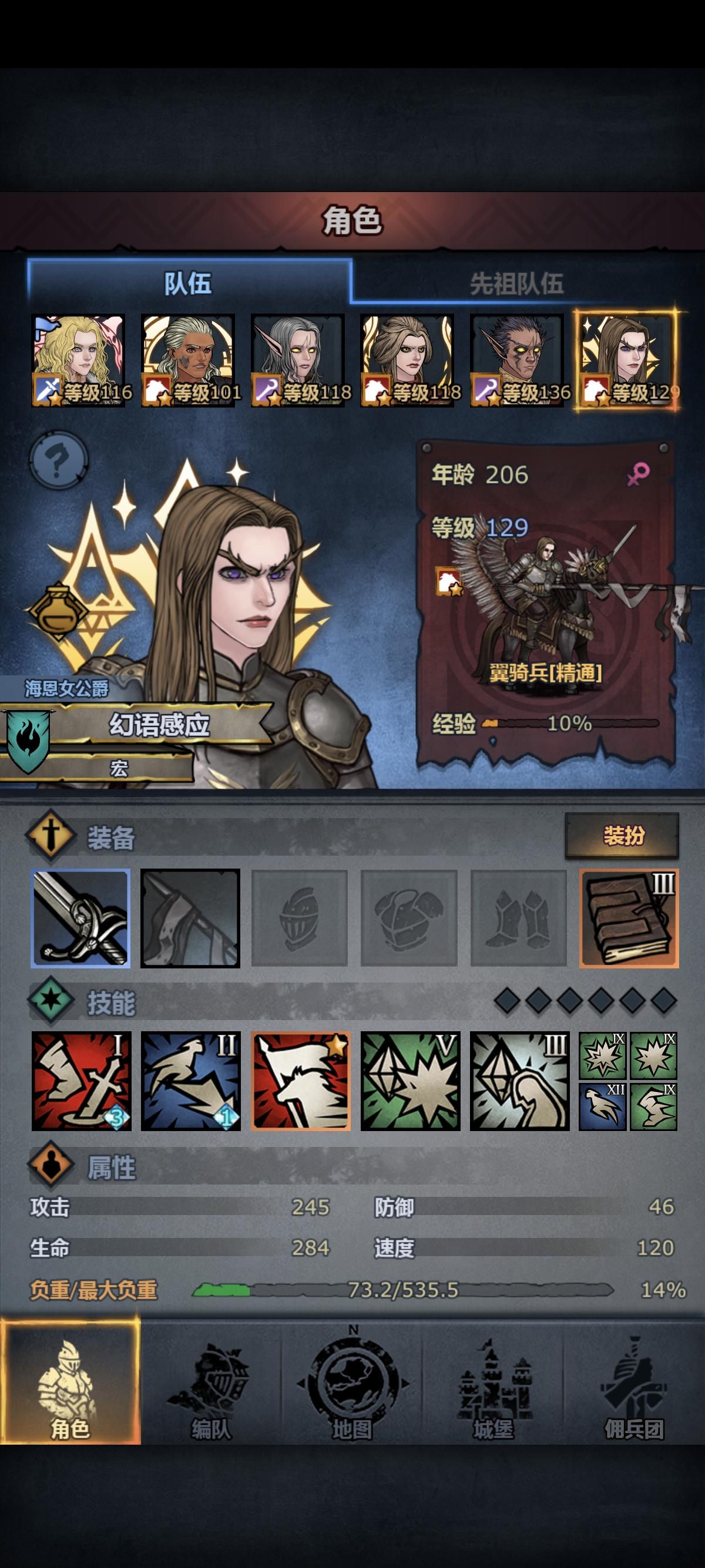 开了小号玩了几天熟悉了一下游戏,跟着攻略到布卡城本来想做一级三转雷主小公主的,推太快了没资源做传家宝,就做了个一级二转的盾勇,过完剧情收拾一下就能打8盾,我老号打8盾都费劲 看了下阵容两个狂战两个屠弓两个主教 推荐一套过日常的阵容,越简单越好,职业多了麻烦