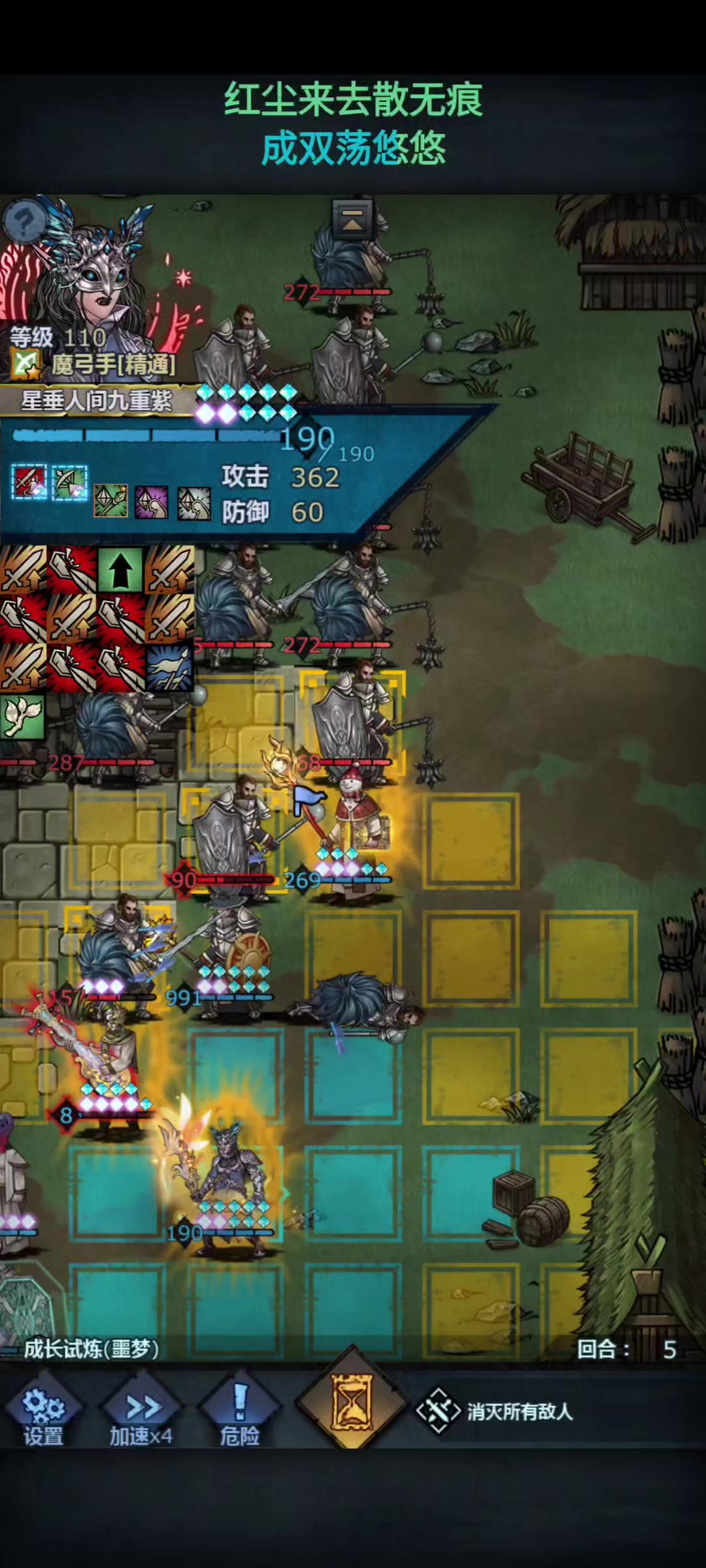 配置490暴击值,2级狂热+3级狂热,俩双倍战意诗人,一激励主教,带一级割喉即可秒杀,5级割喉可以秒两个。